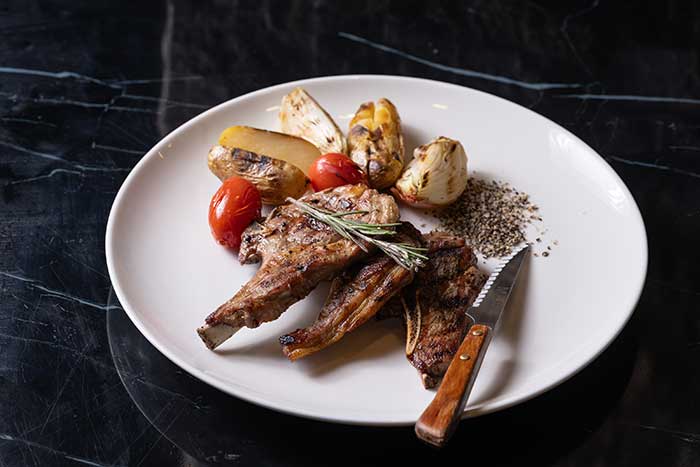 בתפריט תמצאו מבחר גדול של בשרים מובחרים, דגים, פירות ים ו־14 סלטי בית מרהיבים.